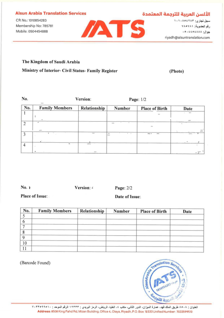 هل تريد الحصول على خدمة ترجمة كرت العائلة موثوقة في الرياض بدقة وسرعة؟