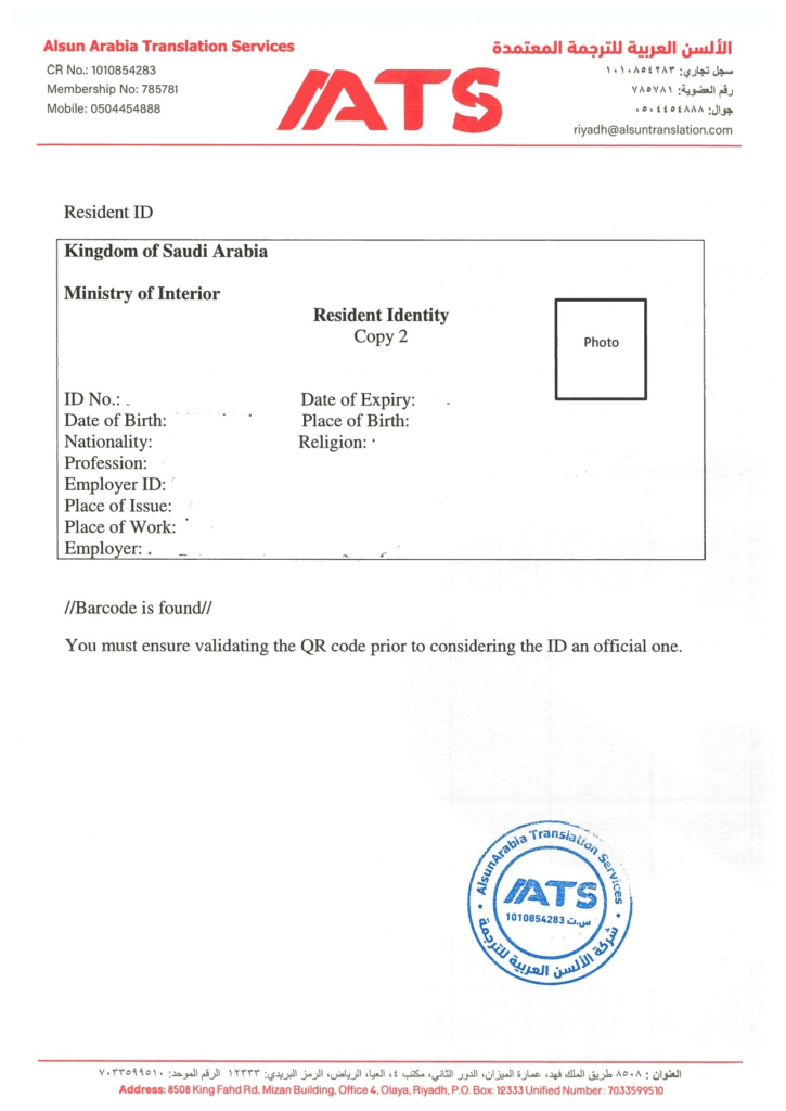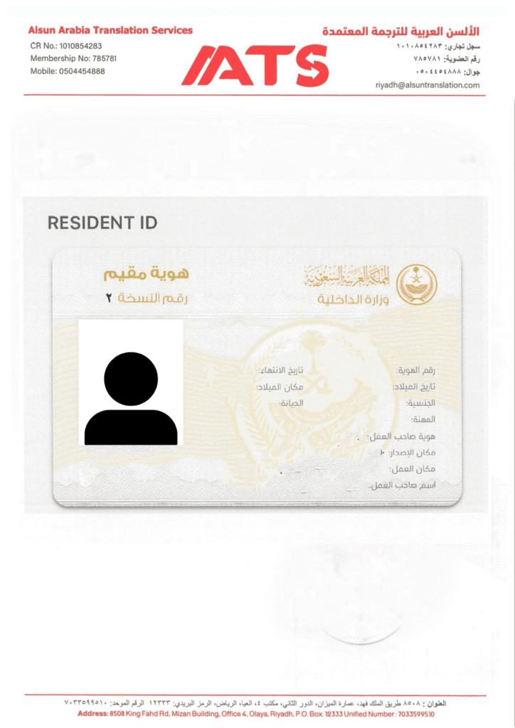 يجب أن تتم ترجمة الإقامة السعودية من قبل مكتب ترجمة معتمد ومرخص. هذا يضمن أن الترجمة ستكون دقيقة ومعترف بها من قبل الجهات الرسمية مثل الألسن العربية مكتب ترجمة معتمد وموثوق.